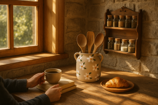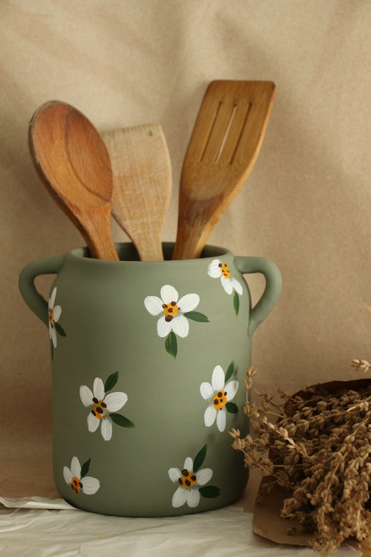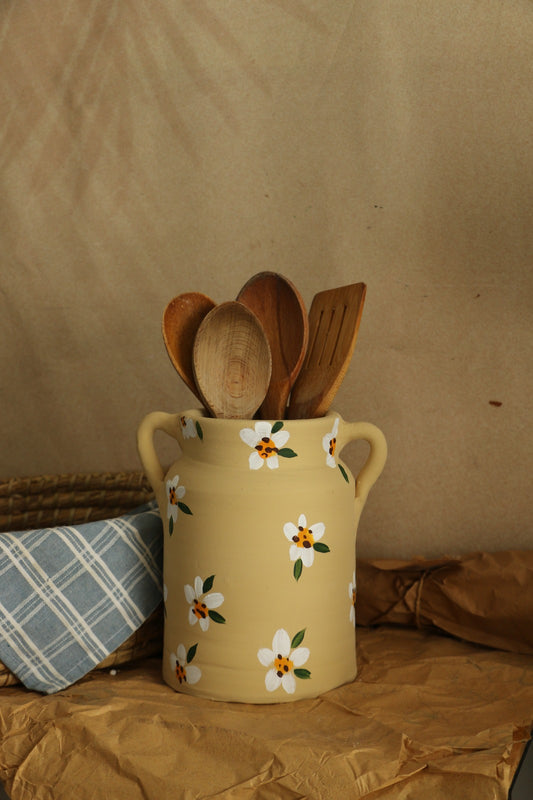 Hoyatap El Yapımı Dekoratif Desenli Kulplu Seramik Vazo / Desenli Kaşıklık