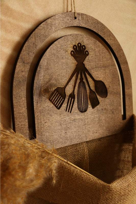 Çelik Askı Detaylı Vintage Taşra Stil Büyük Boy Dekoratif Kaşıklık & Vazo