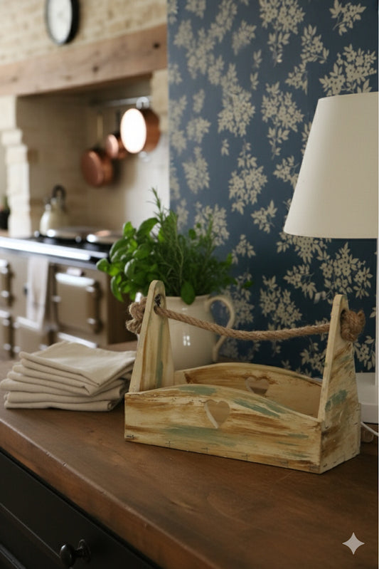 Vintage Dekoratif Ahşap Kutu - Halat Askılı Oyma Desenli Ahşap Organizer