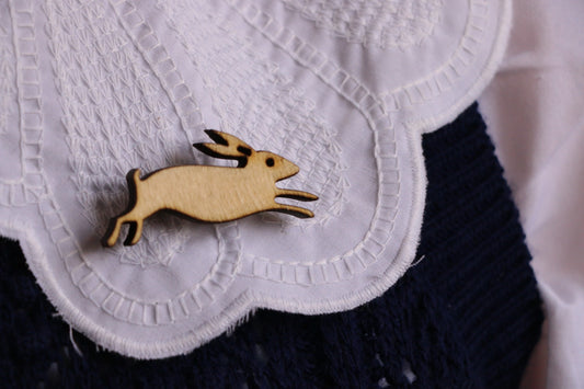 Tavşan Figürlü Ahşap Mini Broş&Yaka Süsü&Çanta Süsü