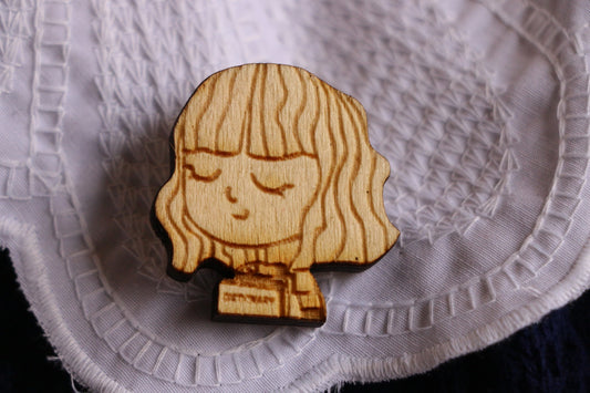 Kız Figürlü Ahşap Mini Broş&Yaka Süsü&Çanta Süsü