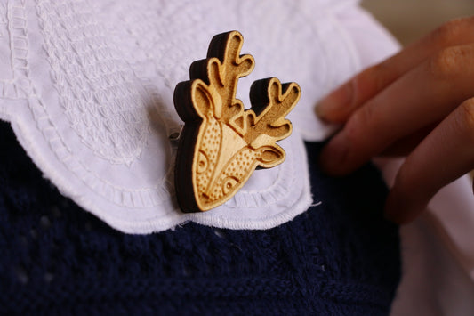 Geyik Figürlü Ahşap Mini Broş&Yaka Süsü&Çanta Süsü