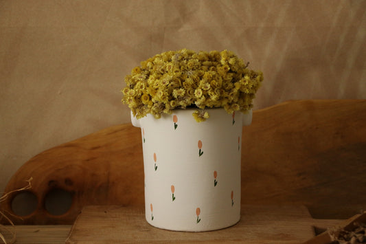 Hoyatap Dekoratif Zarif Çiçek Desenli El Yapımı Ve El Boyama Seramik Kulplu Vazo