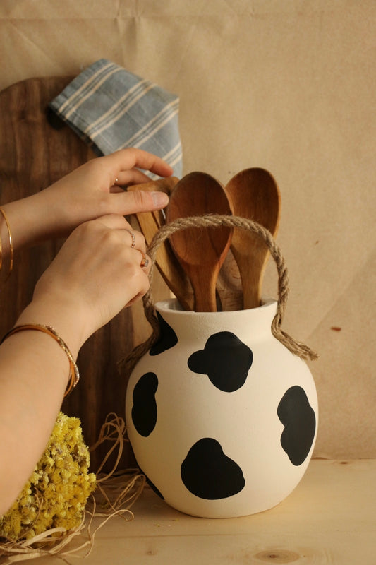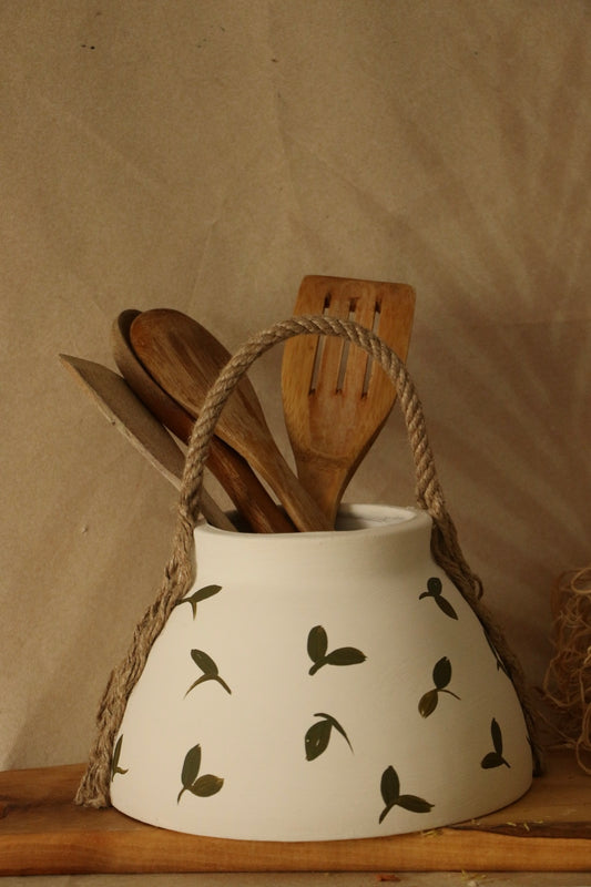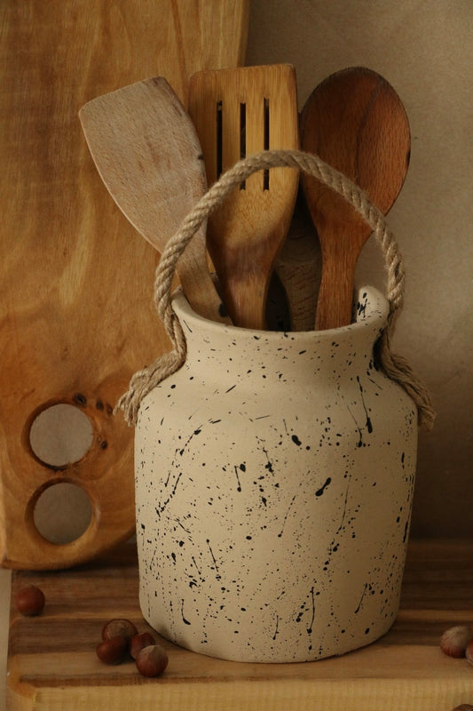 Hoyatap Dekoratif El Yapımı Halat Askılı Desenli Seramik Vazo / Kaşıklık