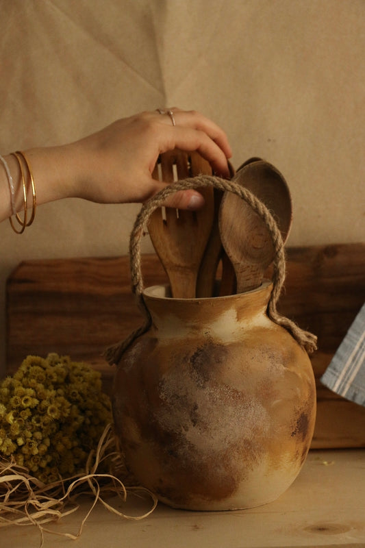 Hoyatap Dekoratif El Yapımı Halat Askılı Vintage Seramik Vazo / Kaşıklık