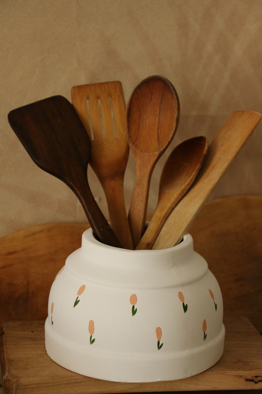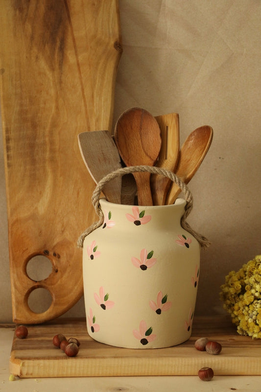 Soft Çiçek Desenli Dekoratif Kaşıklık& Vazo