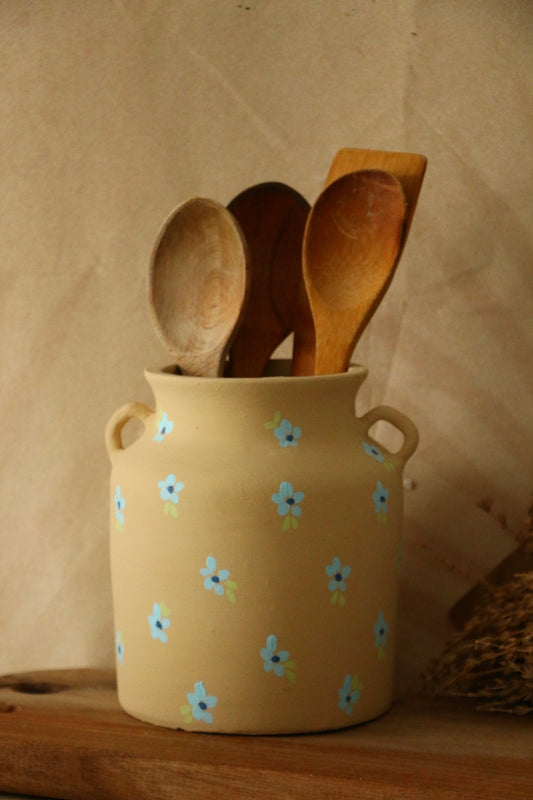 Hoyatap Dekoratif Mavi Mini Çiçekli El Yapımı Ve El Boyama Kulplu Desenli Seramik Vazo