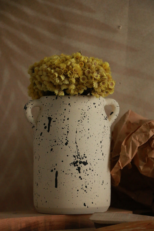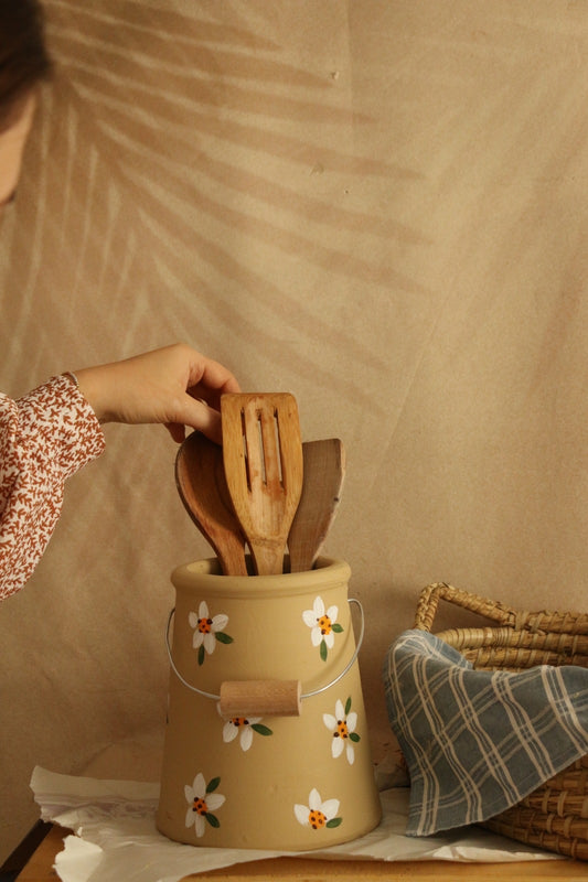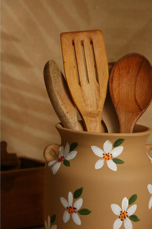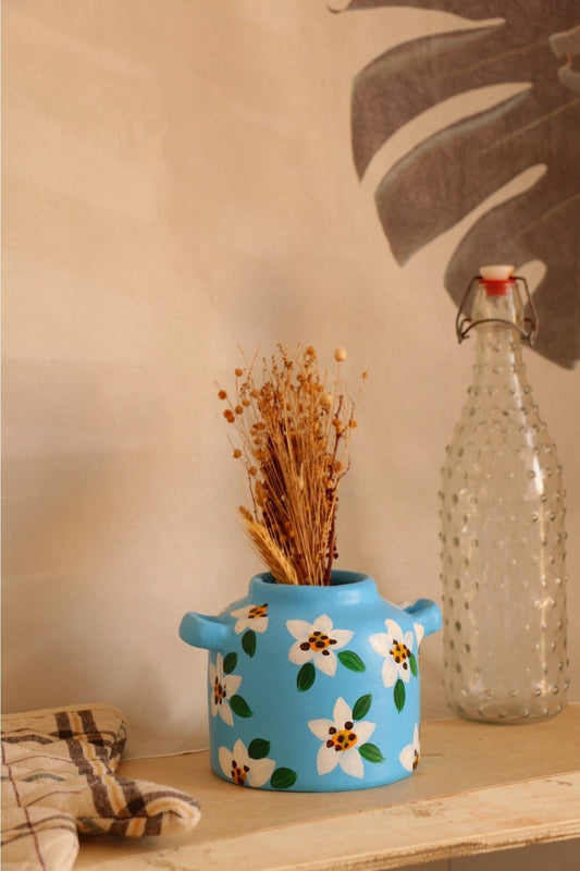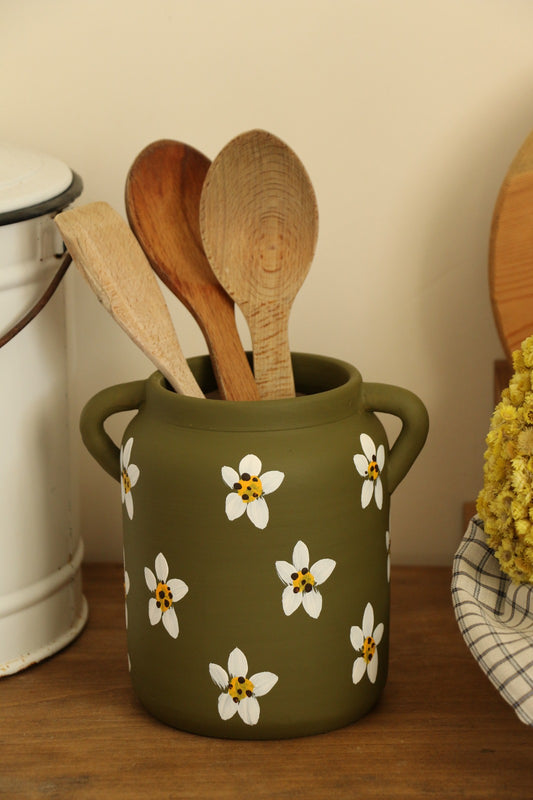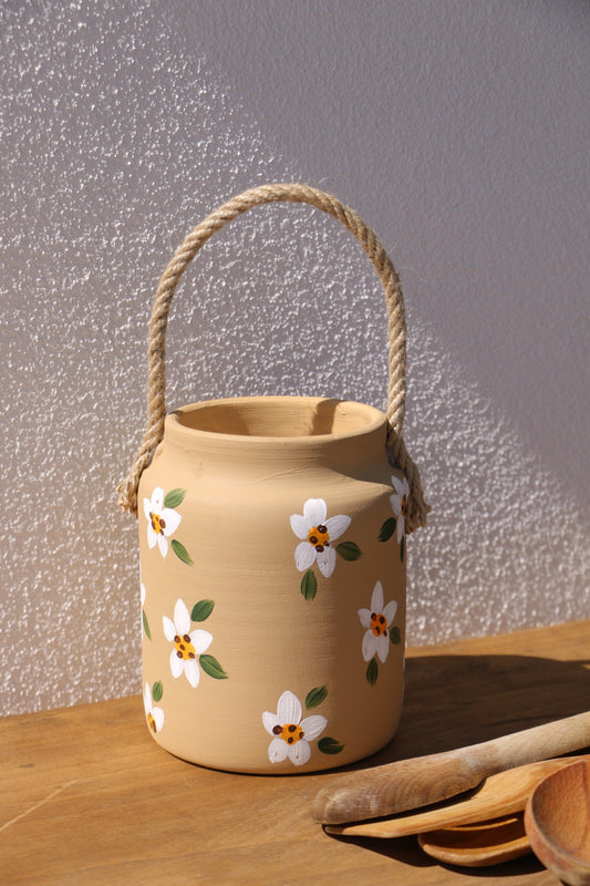 Hoyatap Papatya Desenli Mini El Yapımı Kulplu Seramik Vazo / Kaşıklık