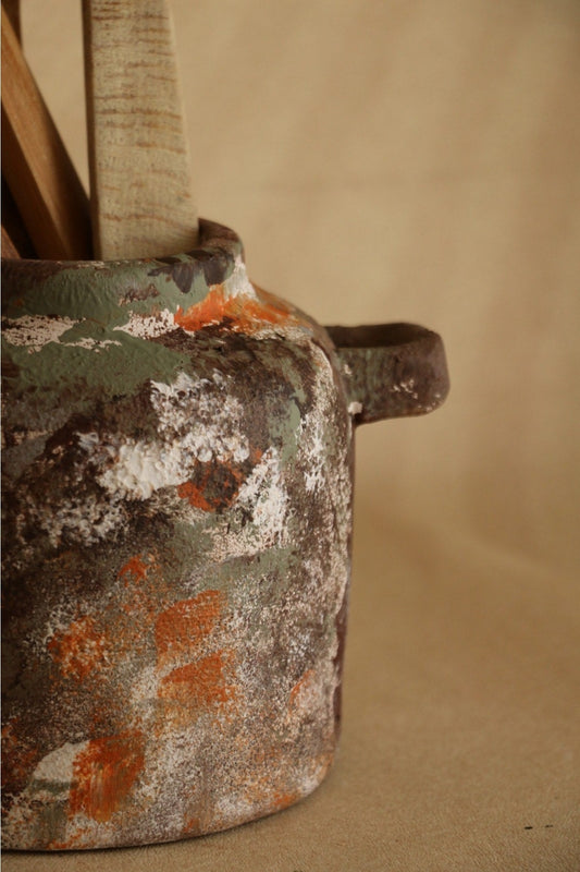 Hoyatap El Yapımı Kulplu Modern Seramik Vazo / Kaşıklık