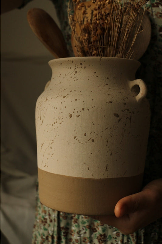 Hoyatap Dekoratif El Yapımı Kulplu Büyük Seramik Vazo/ Kaşıklık