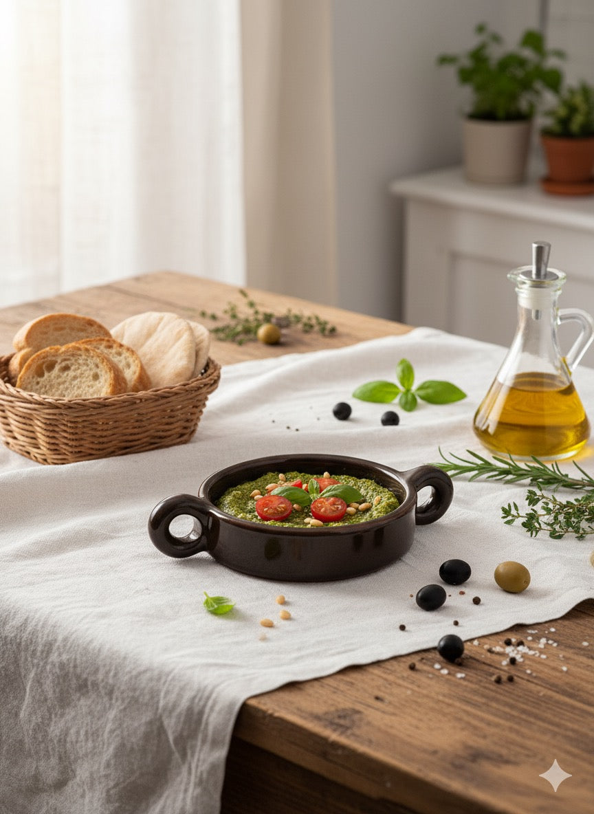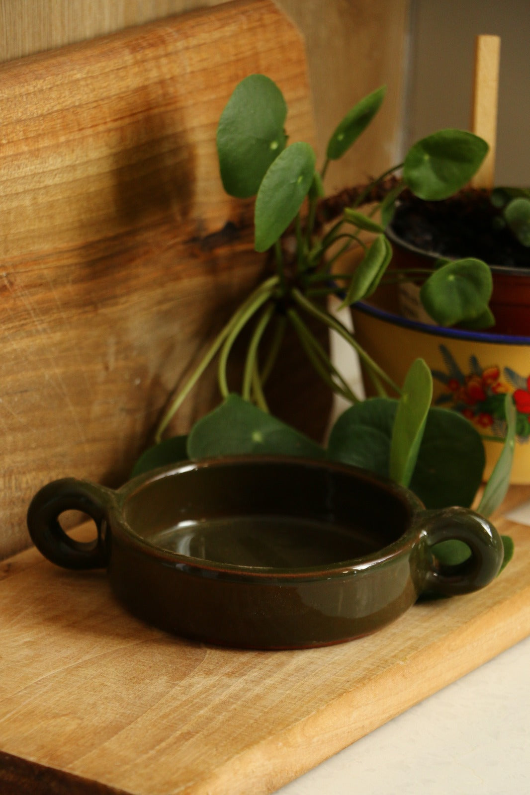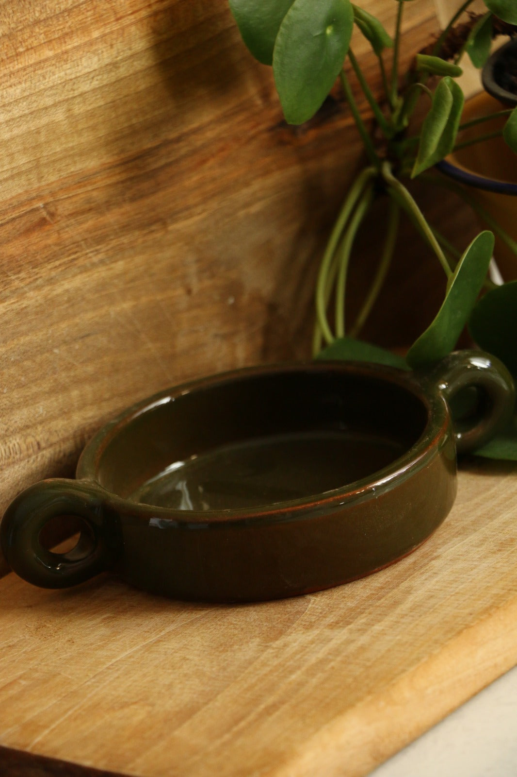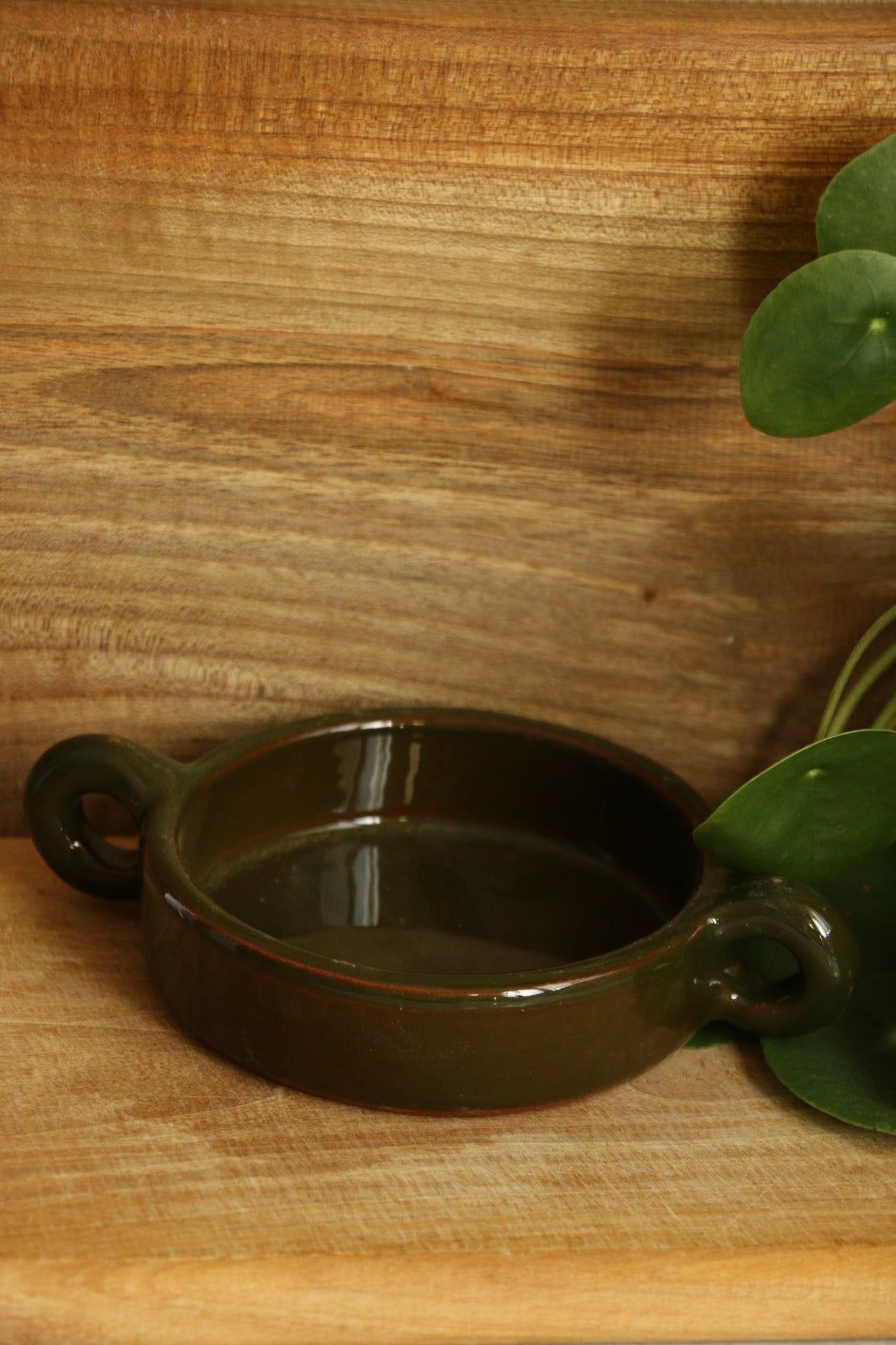 El Yapımı Dekoratif Kulplu Haki Renk Kase -Mezelik