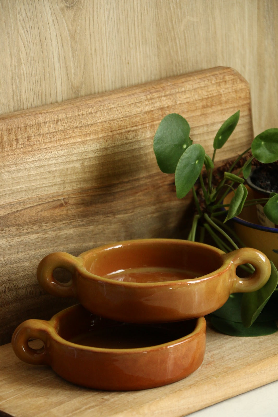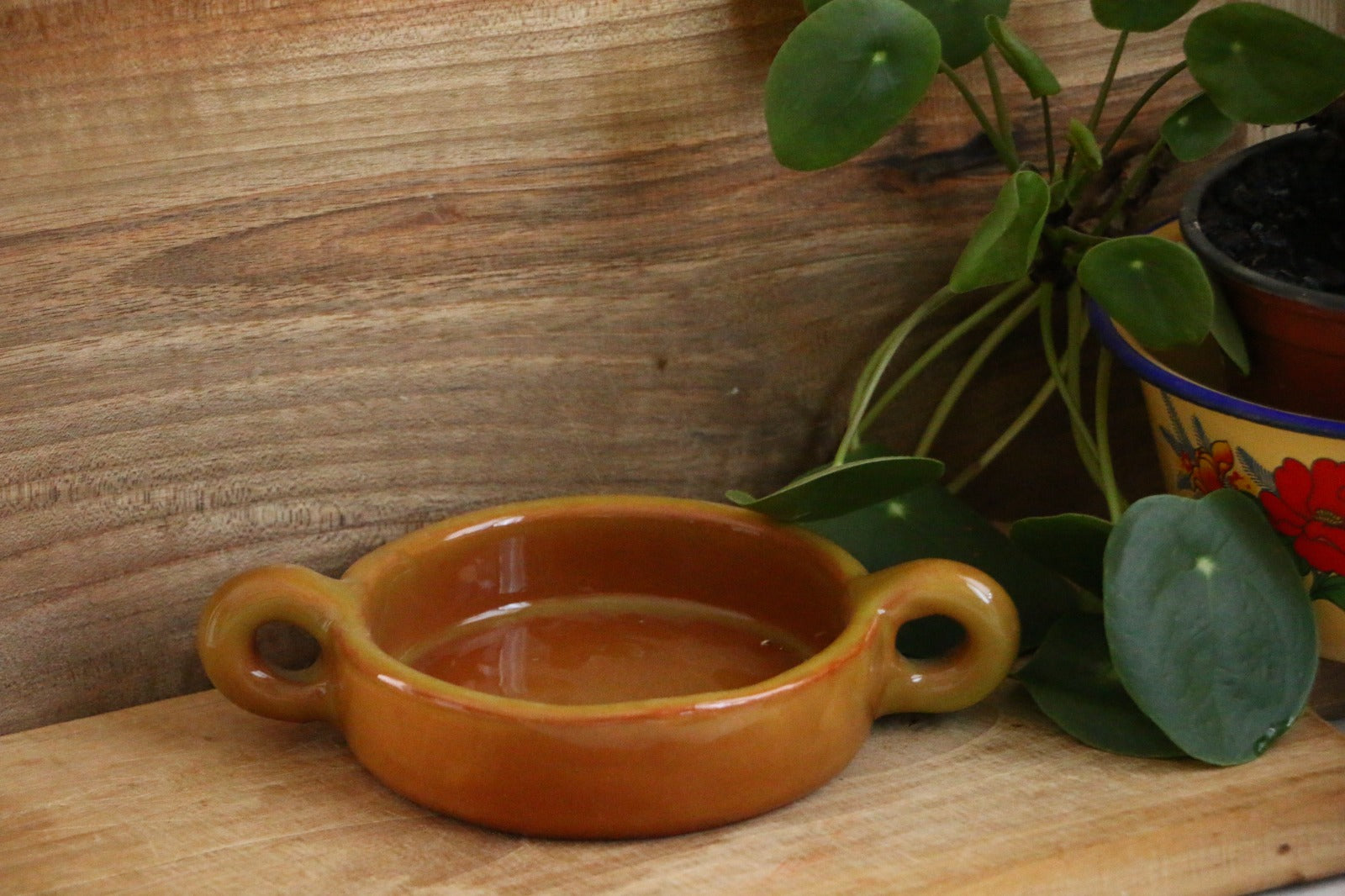 El Yapımı Dekoratif Kulplu Sarı Renk Kase -Mezelik