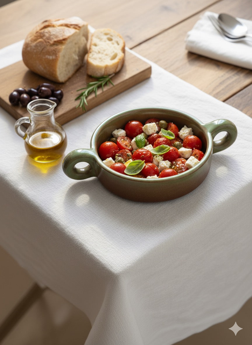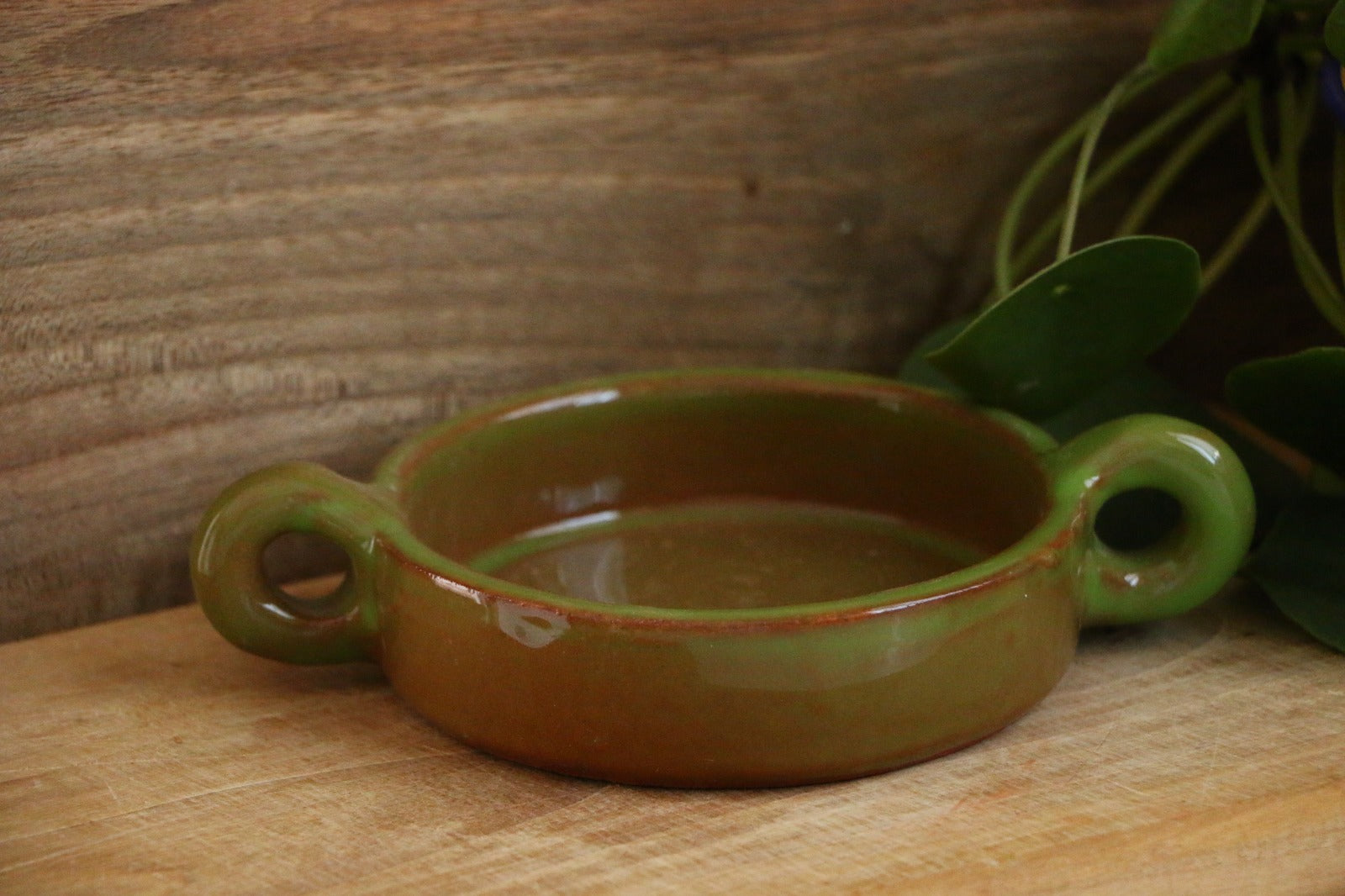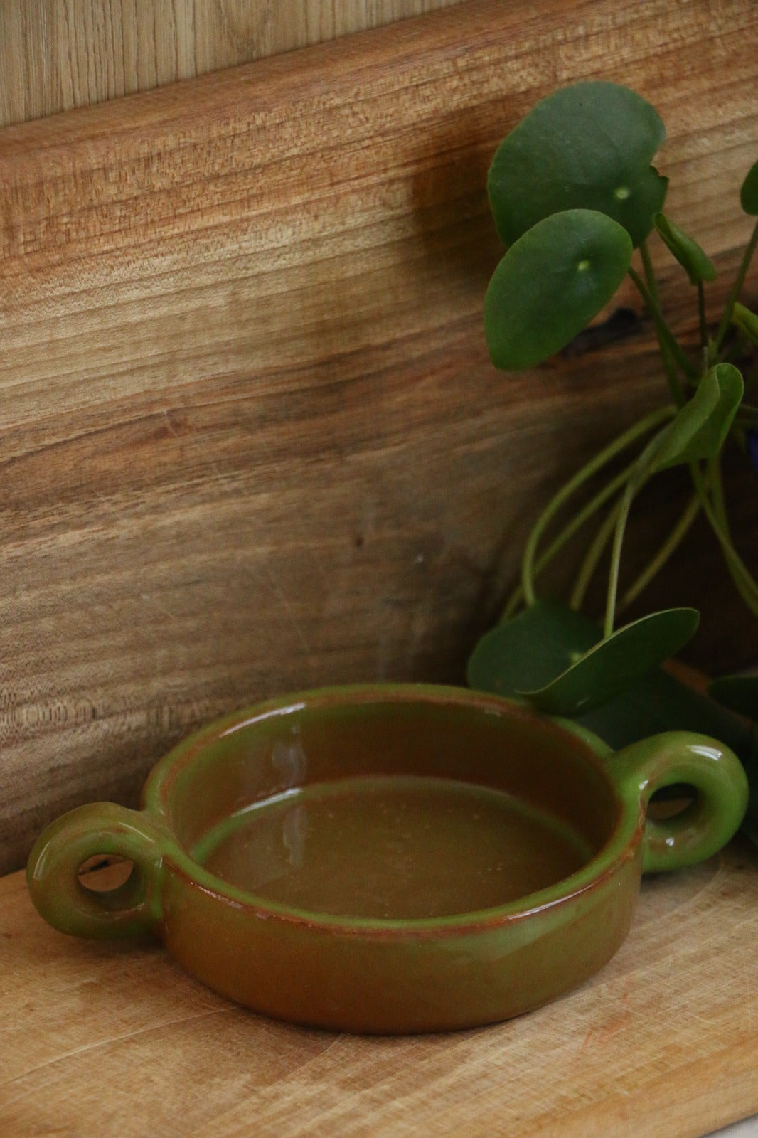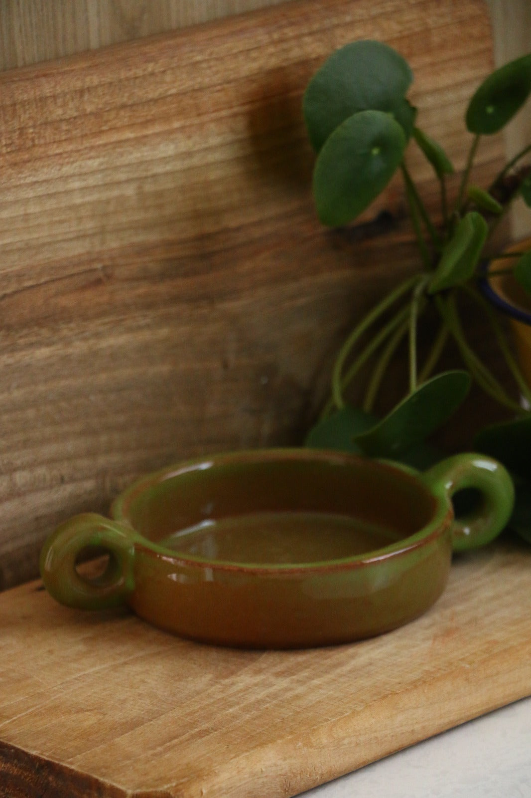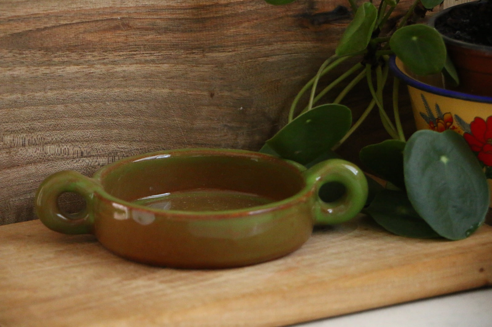 El Yapımı Dekoratif Kulplu Yeşil Renk Kase -Mezelik