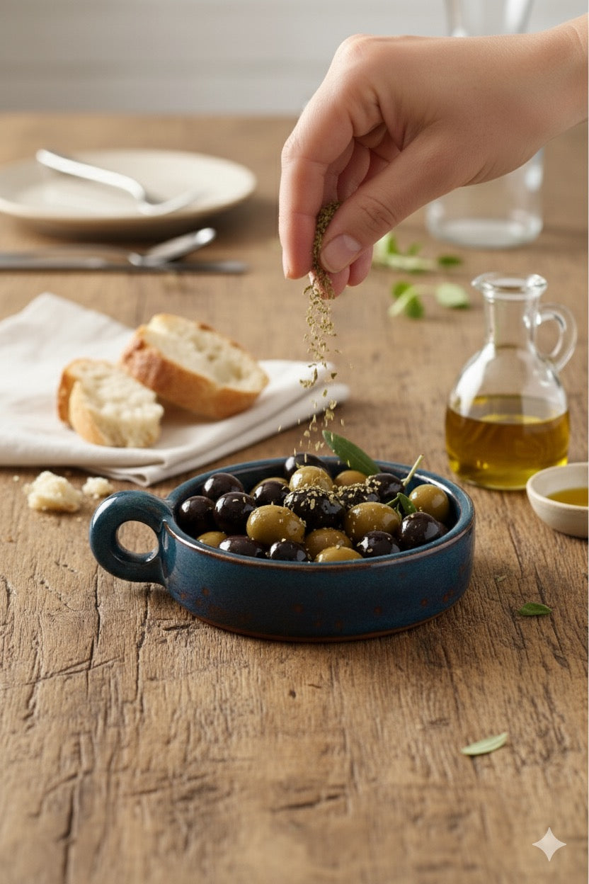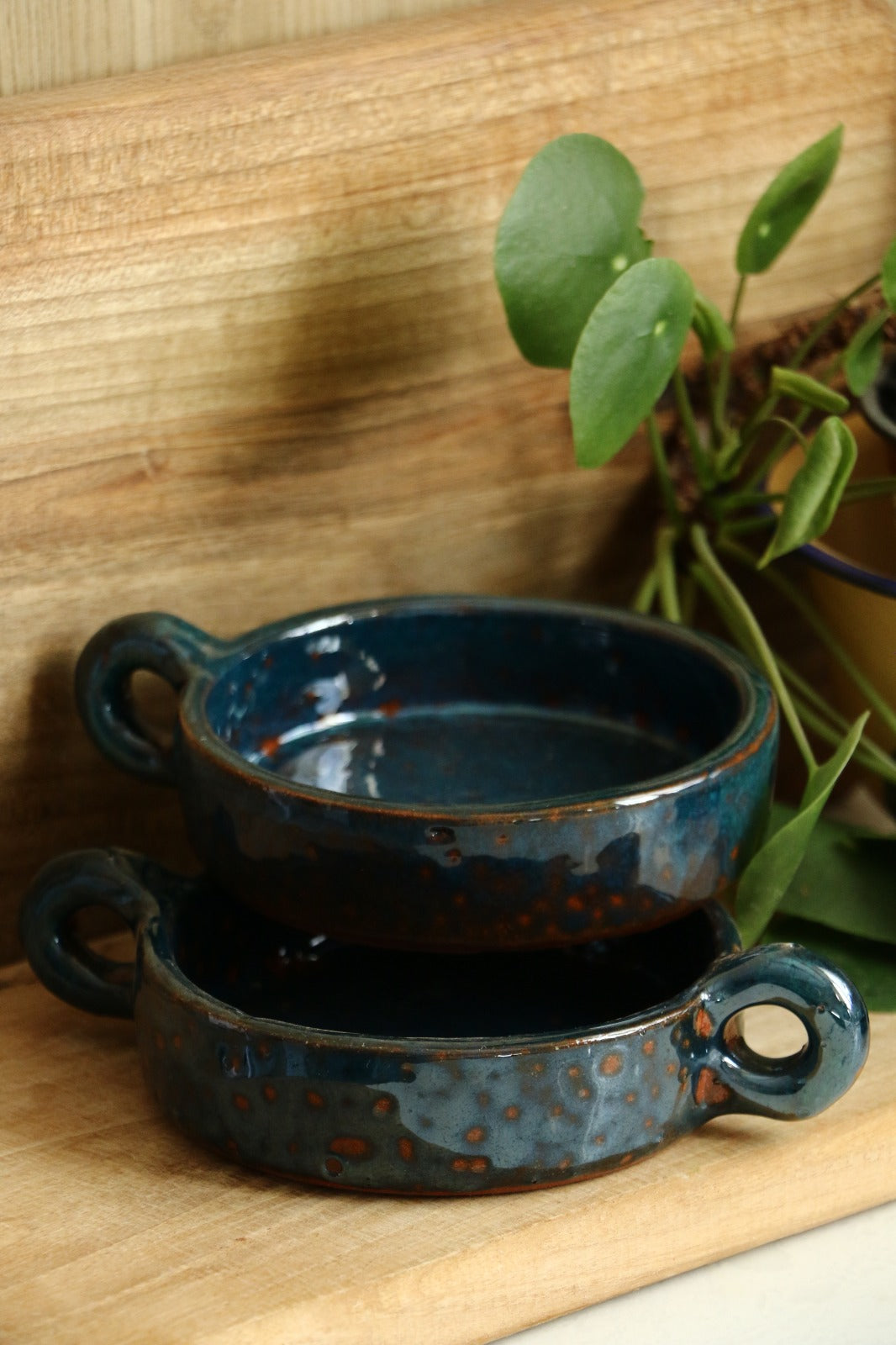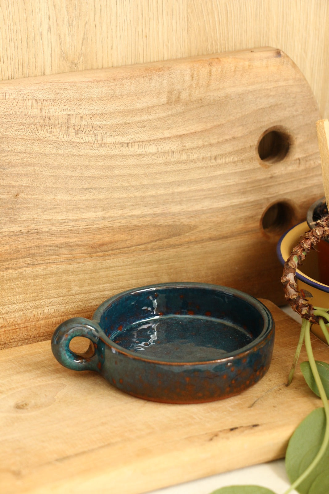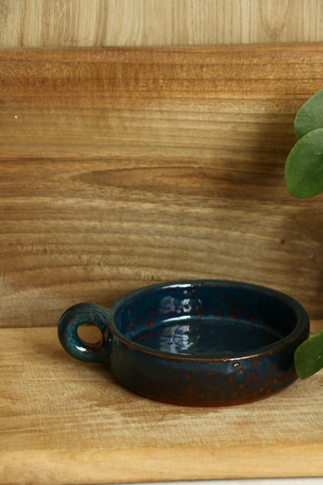 El Yapımı Dekoratif Tek Kulplu Mavi Desenli Renk Kase -Mezelik