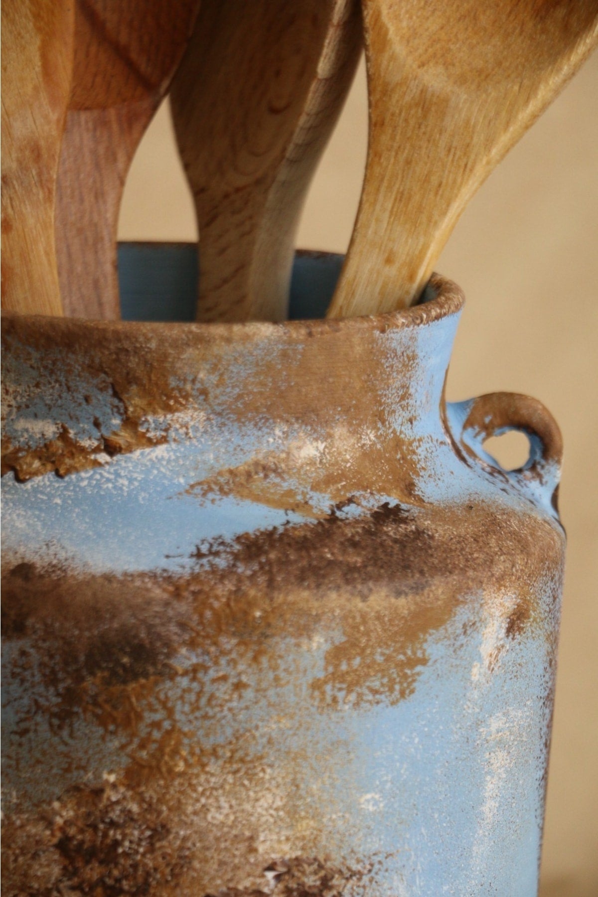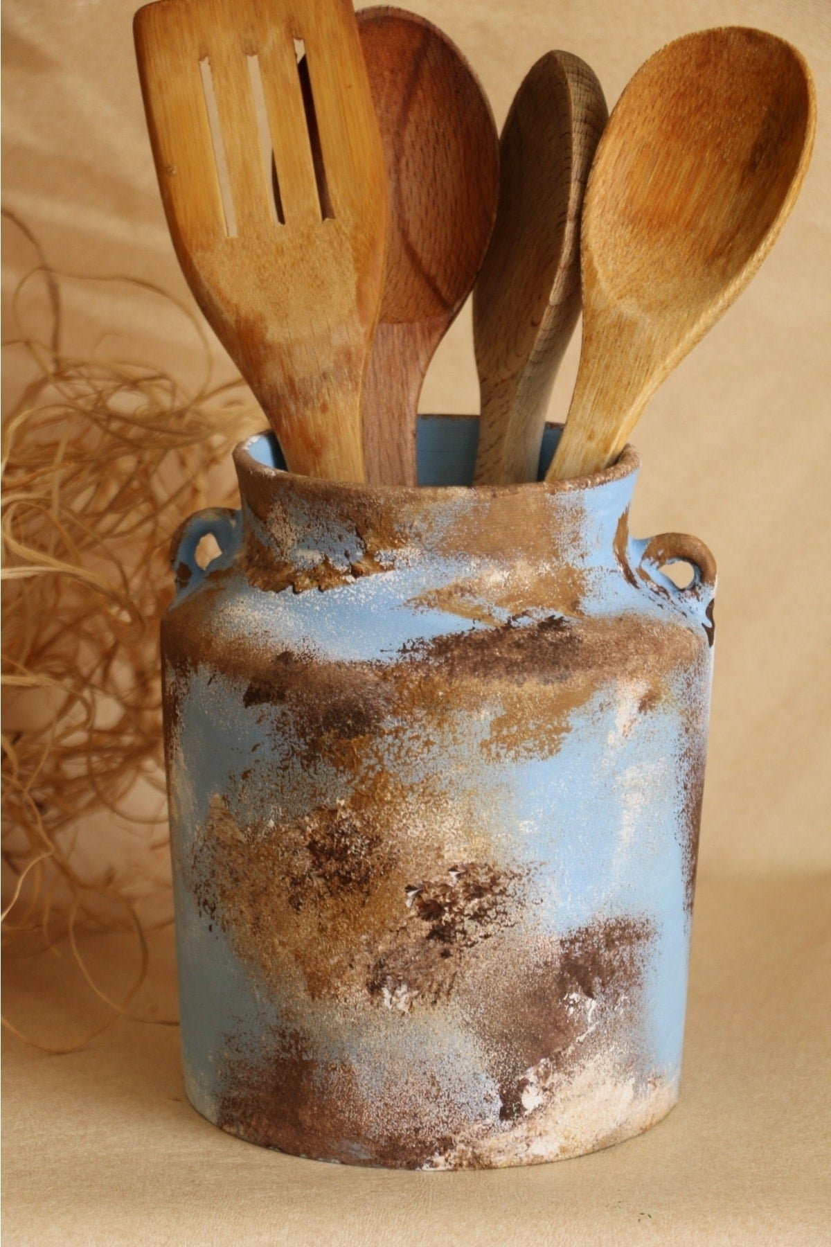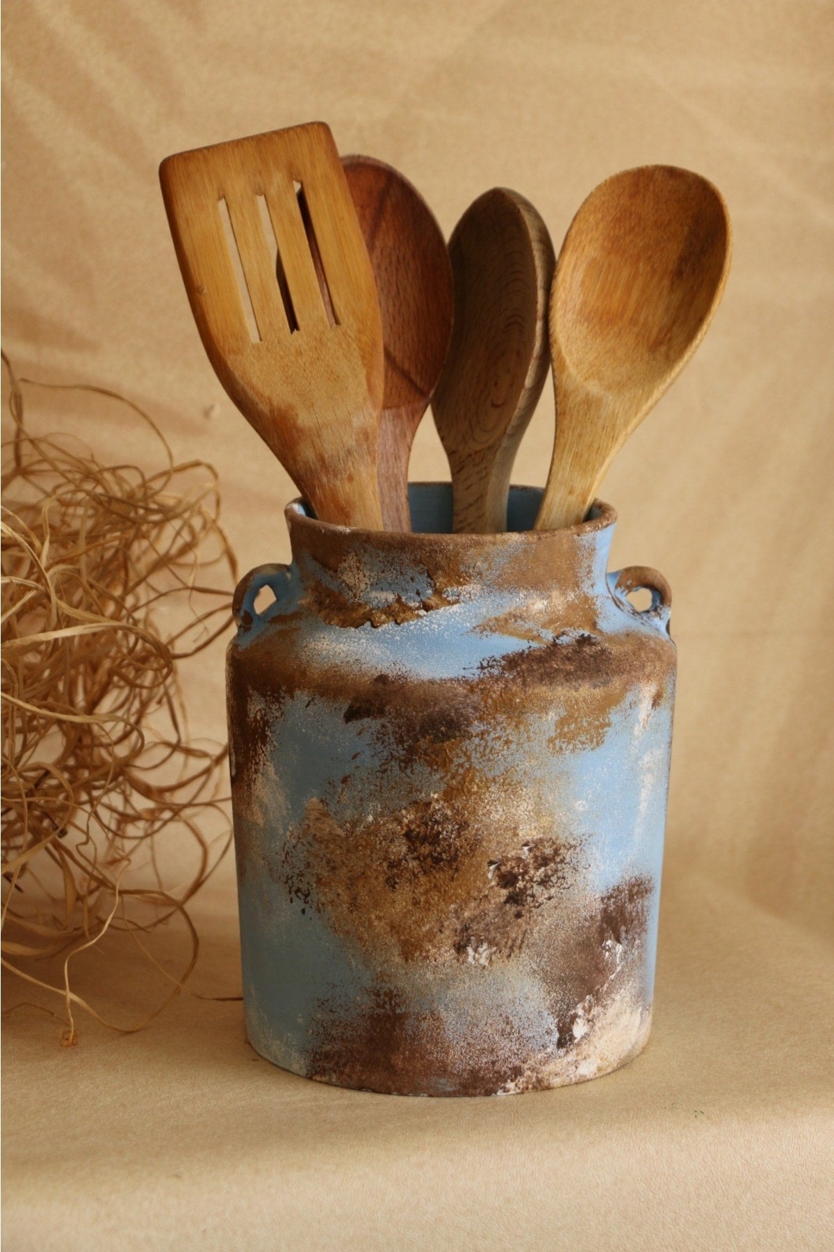 Hoyatap El Yapımı Kulplu Büyük Vintage Eskitme Kaşıklık
